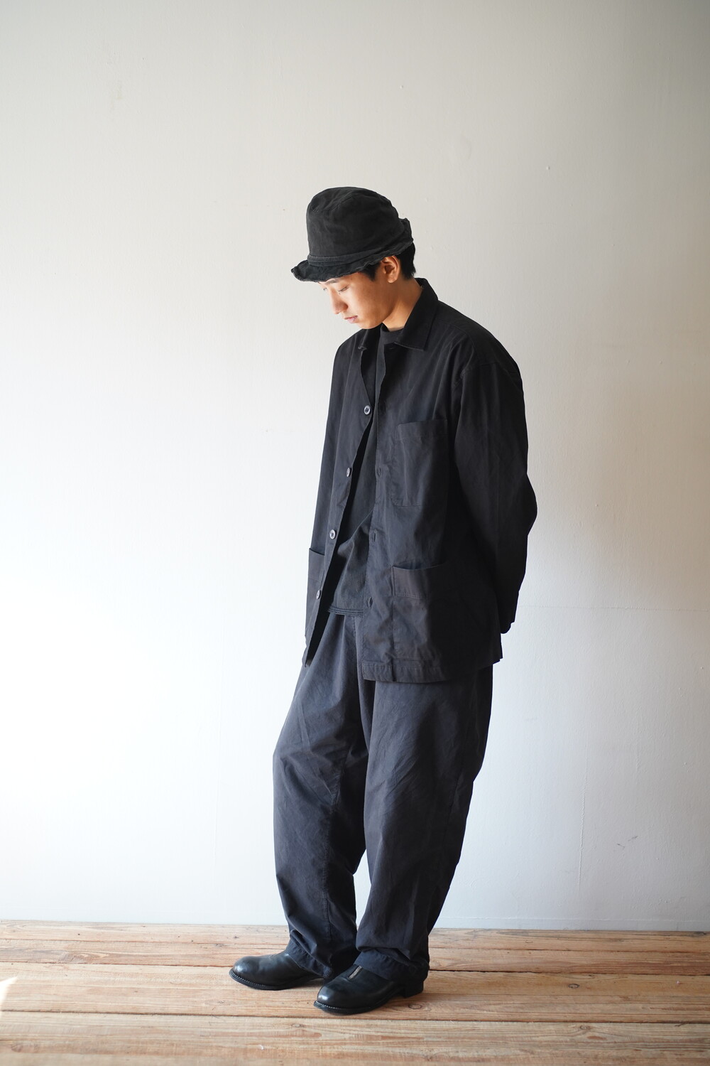 일본산 오가닉코튼 소재를 사용하여 부드러운 터치감과 오버사이즈드 핏이 특징인 Three pocket jacket.