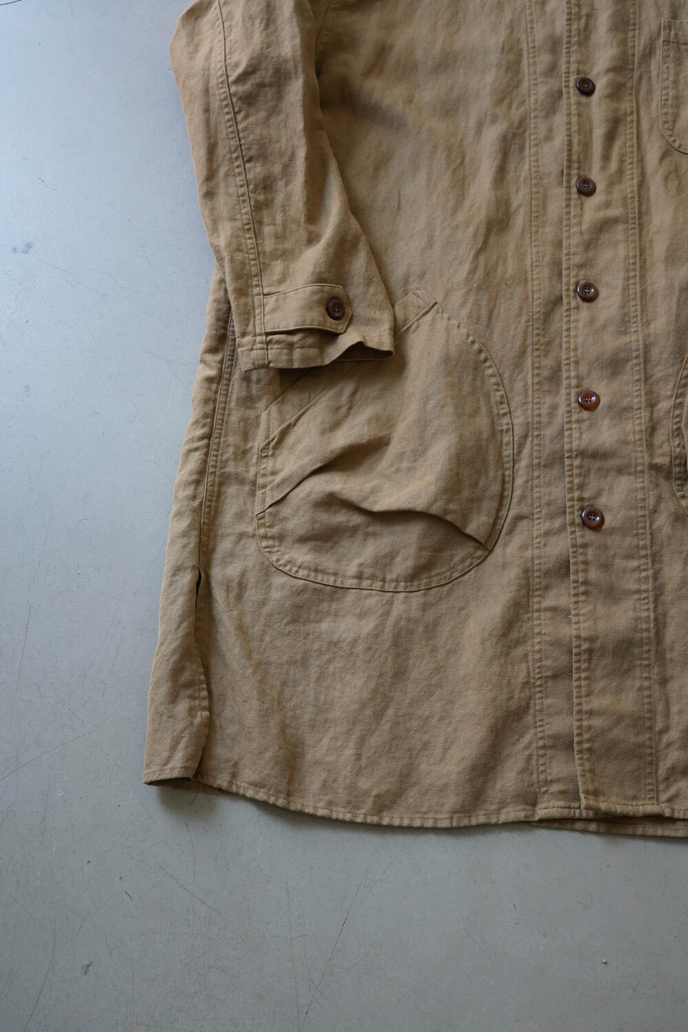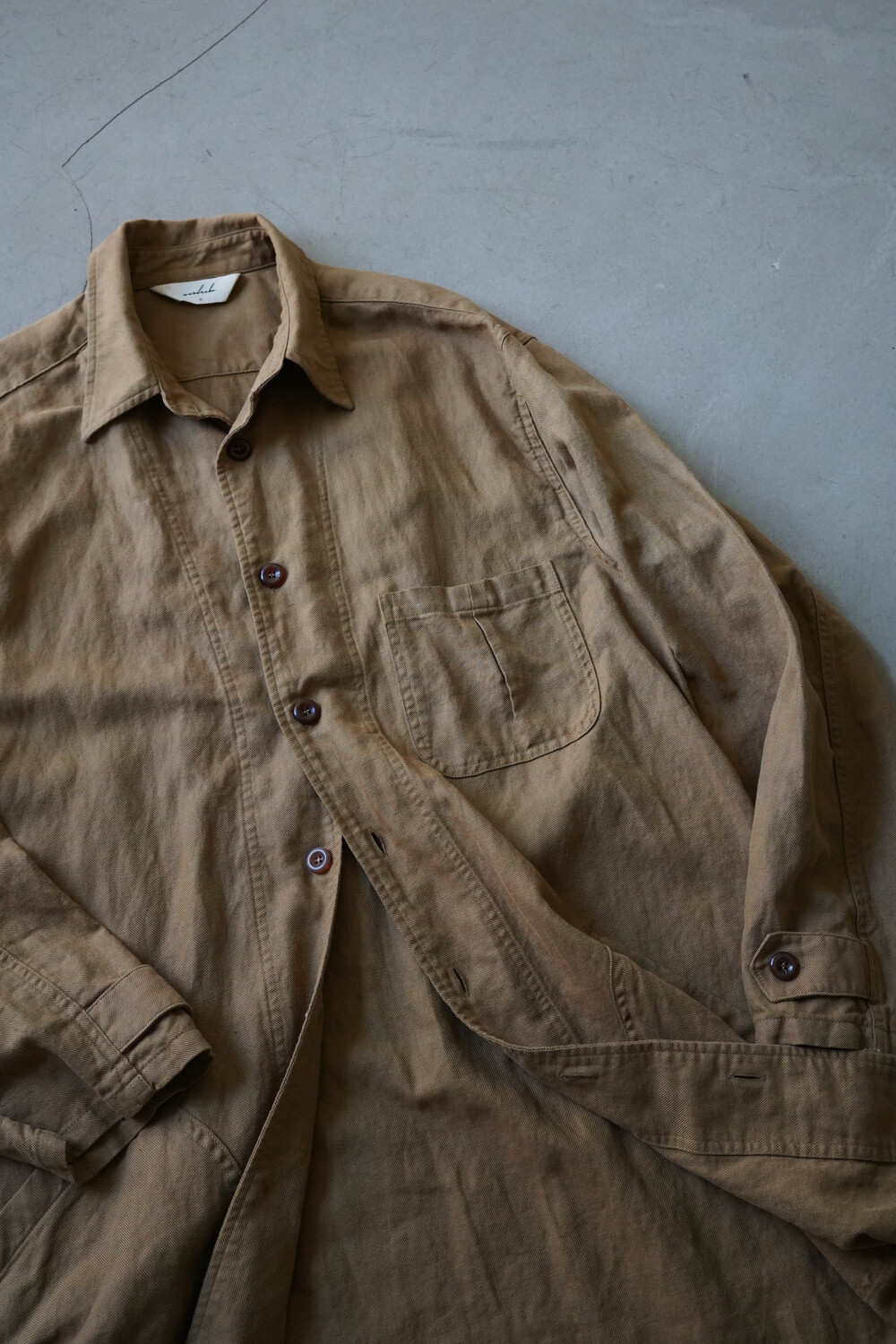 워싱 가공을 하여, 세탁 후 수축이 거의 없으며, 유려하게 떨어지는 자연스러운 실루엣이 매력적입니다.
