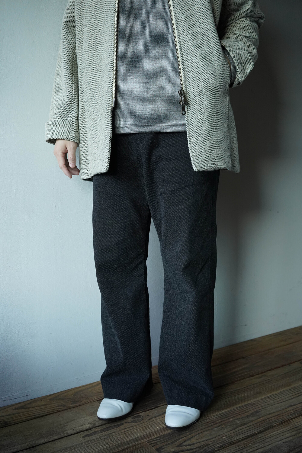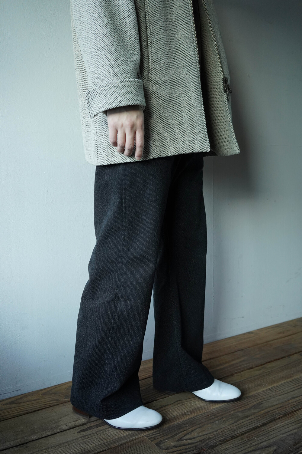 한여름을 제외한 모든 계절에 착용하기 좋은 도톰한 두께의 원단이며, 유려한 실루엣이 매력적입니다.