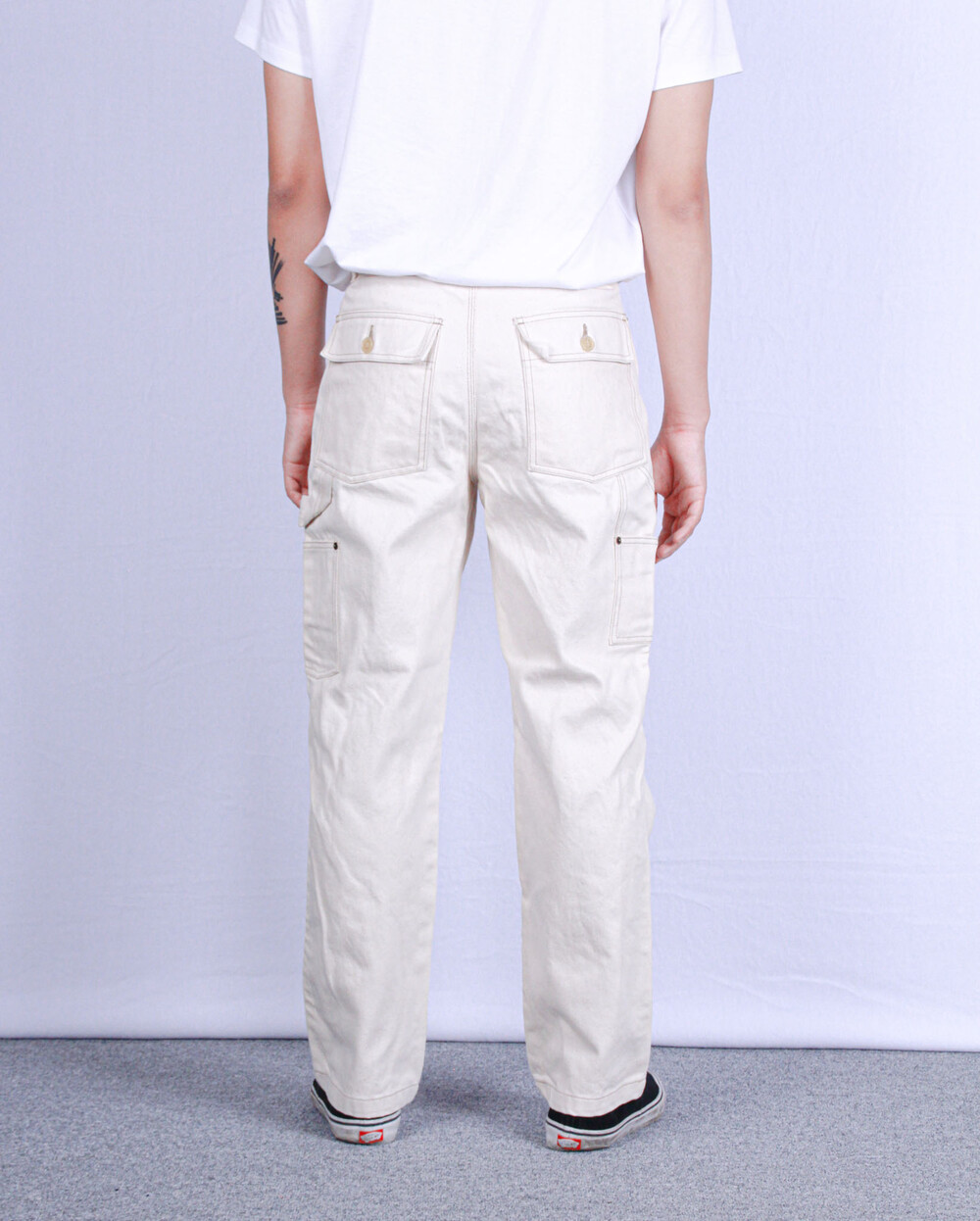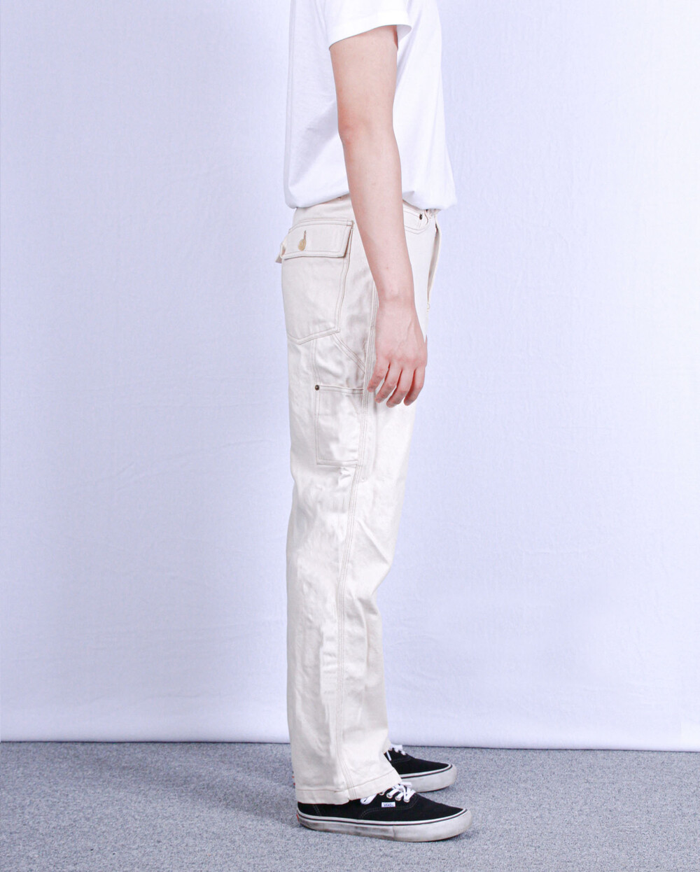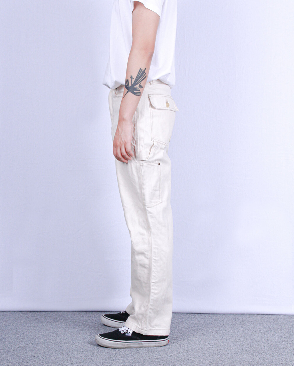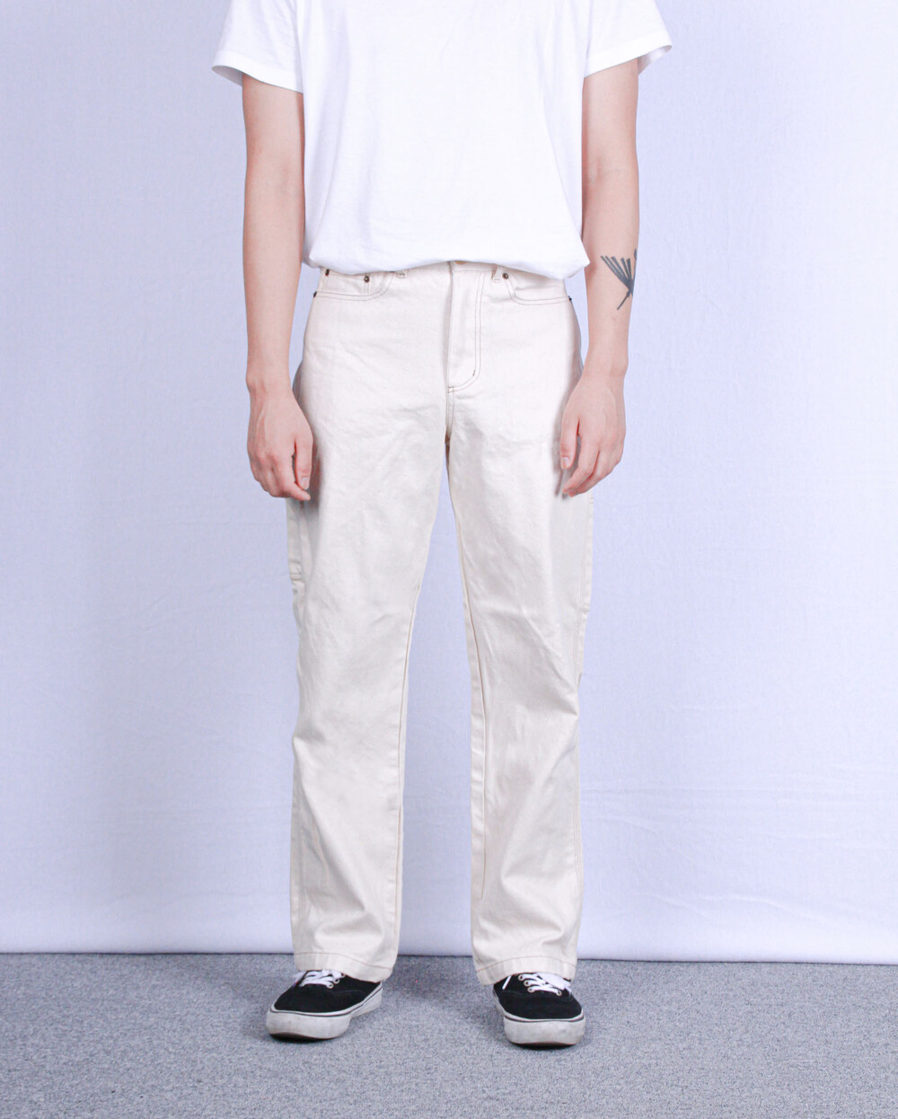 에크루 색상의 데님 원단을 사용하여 특유의 빳빳한 탄력감과